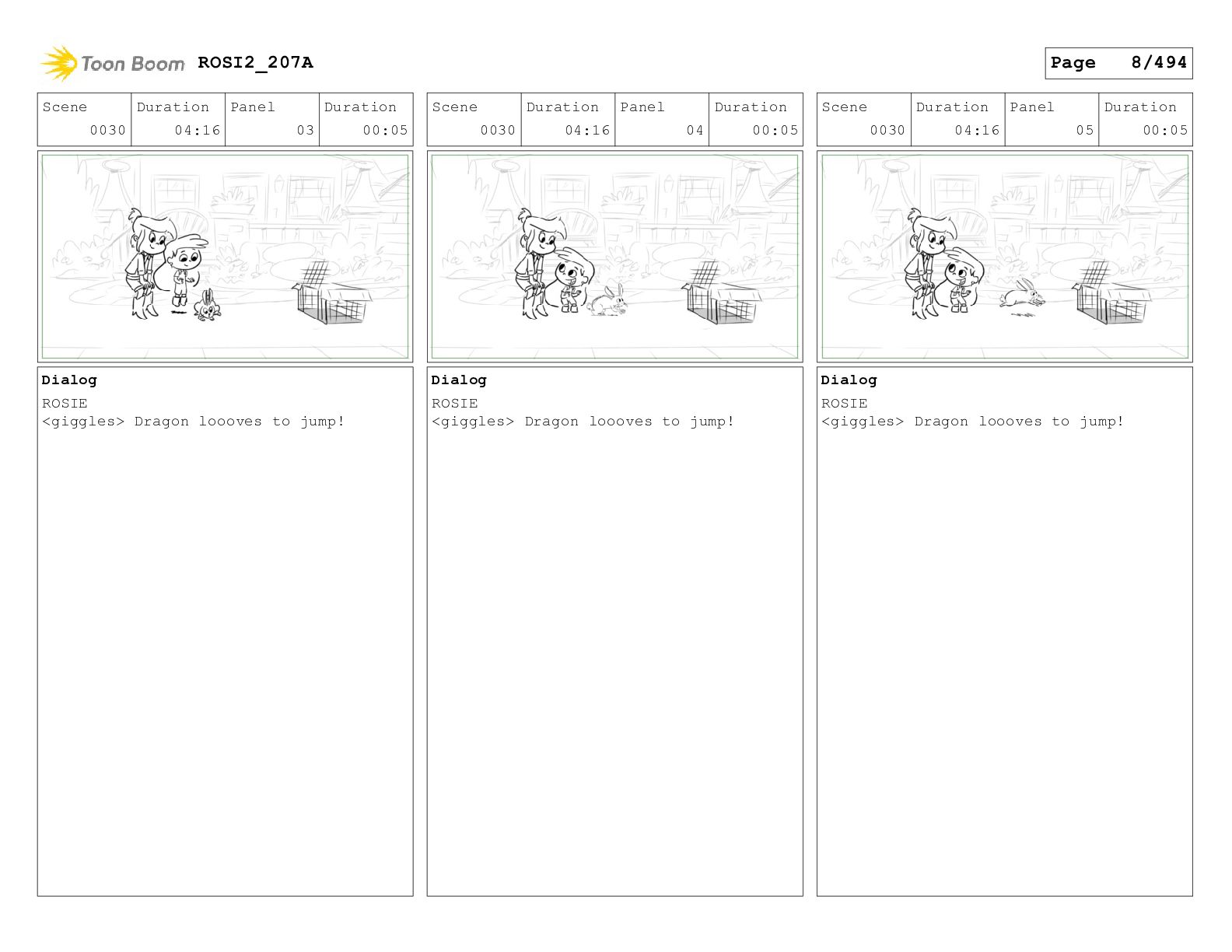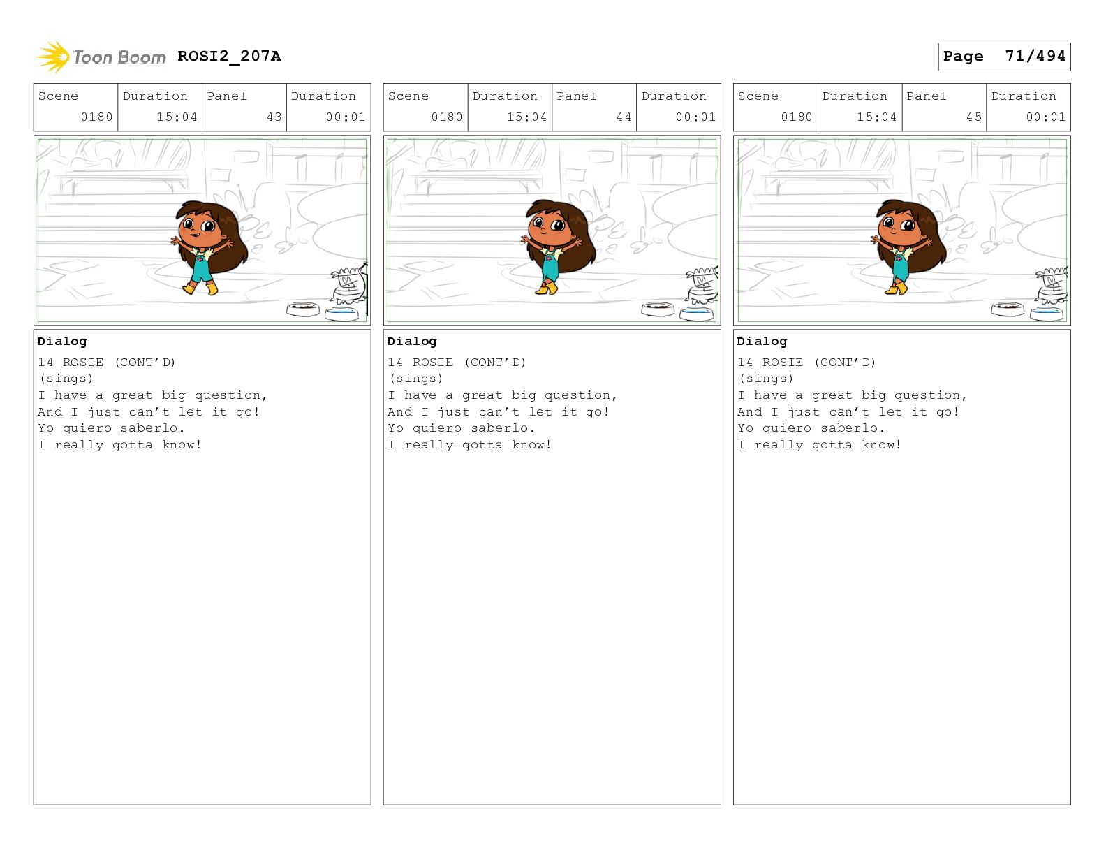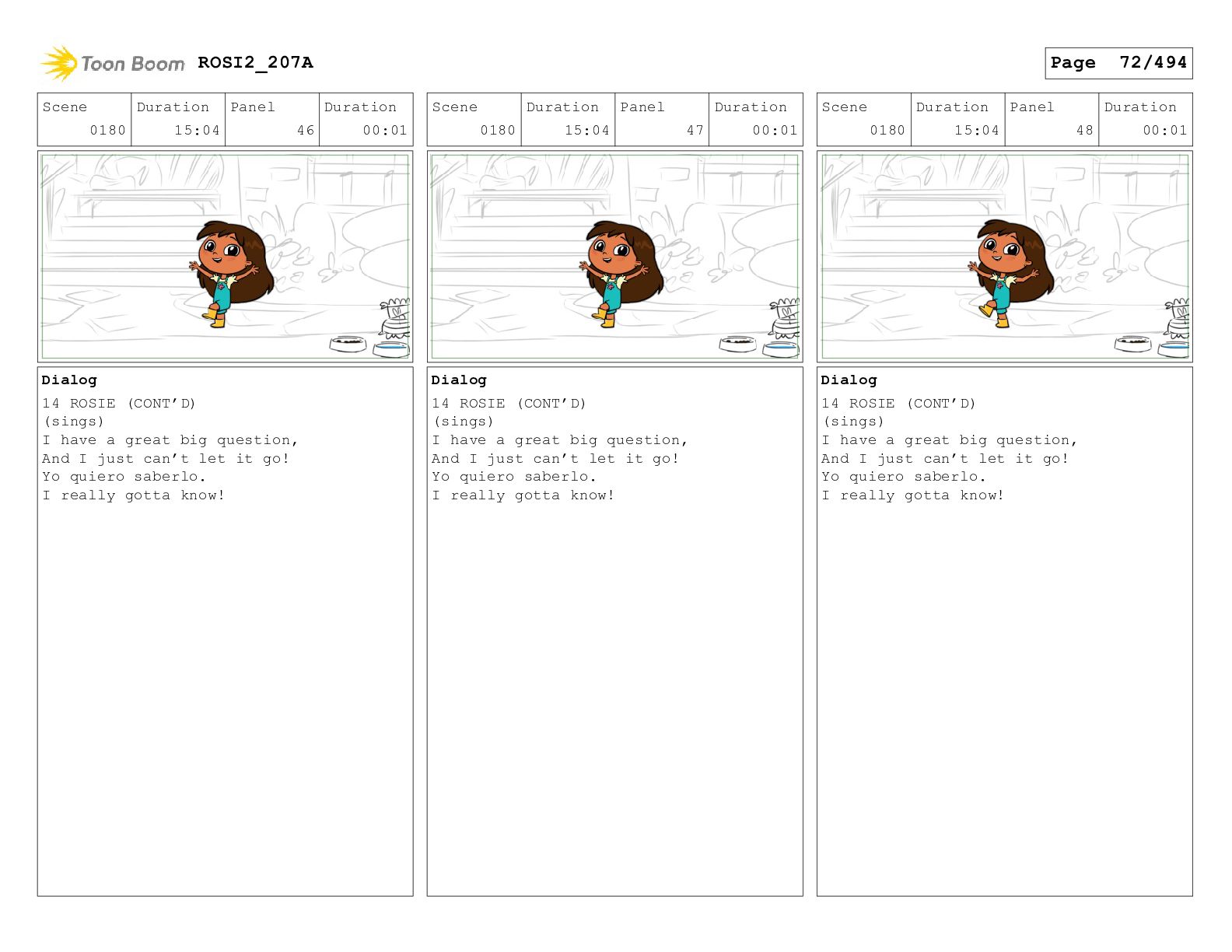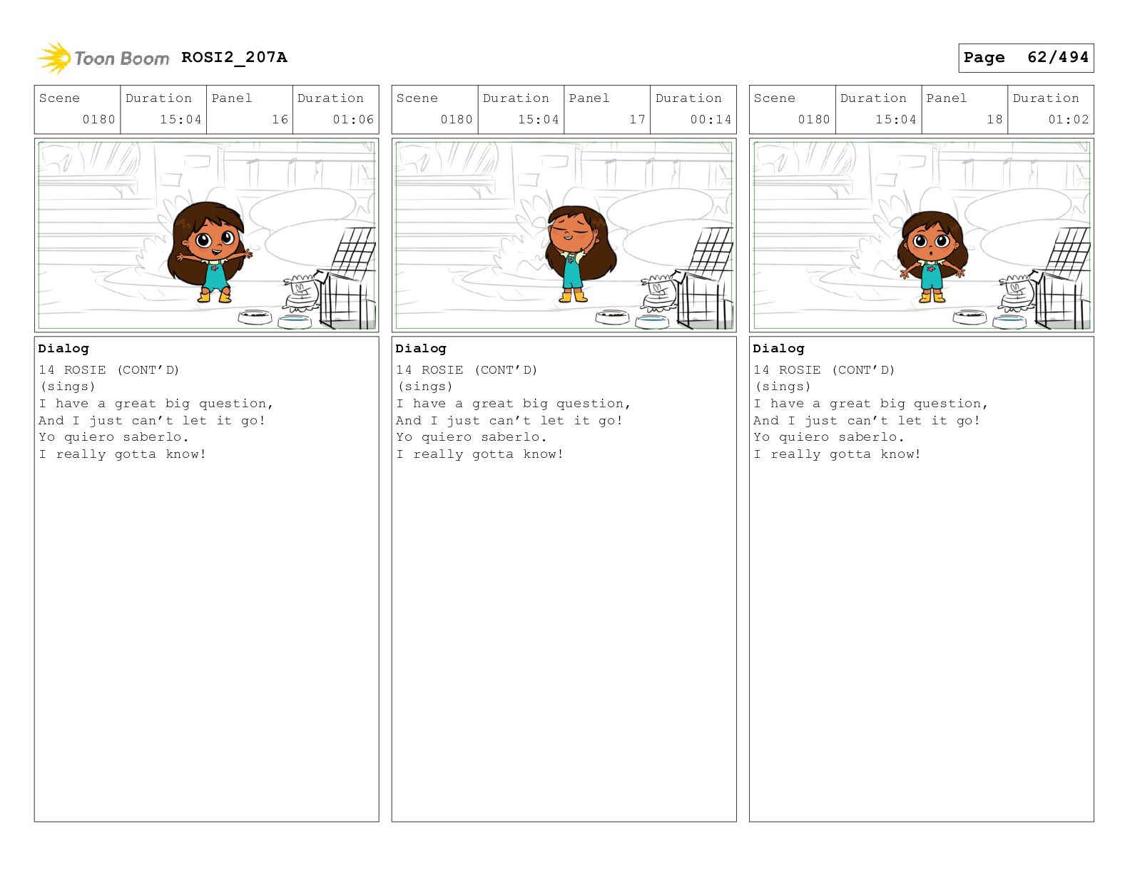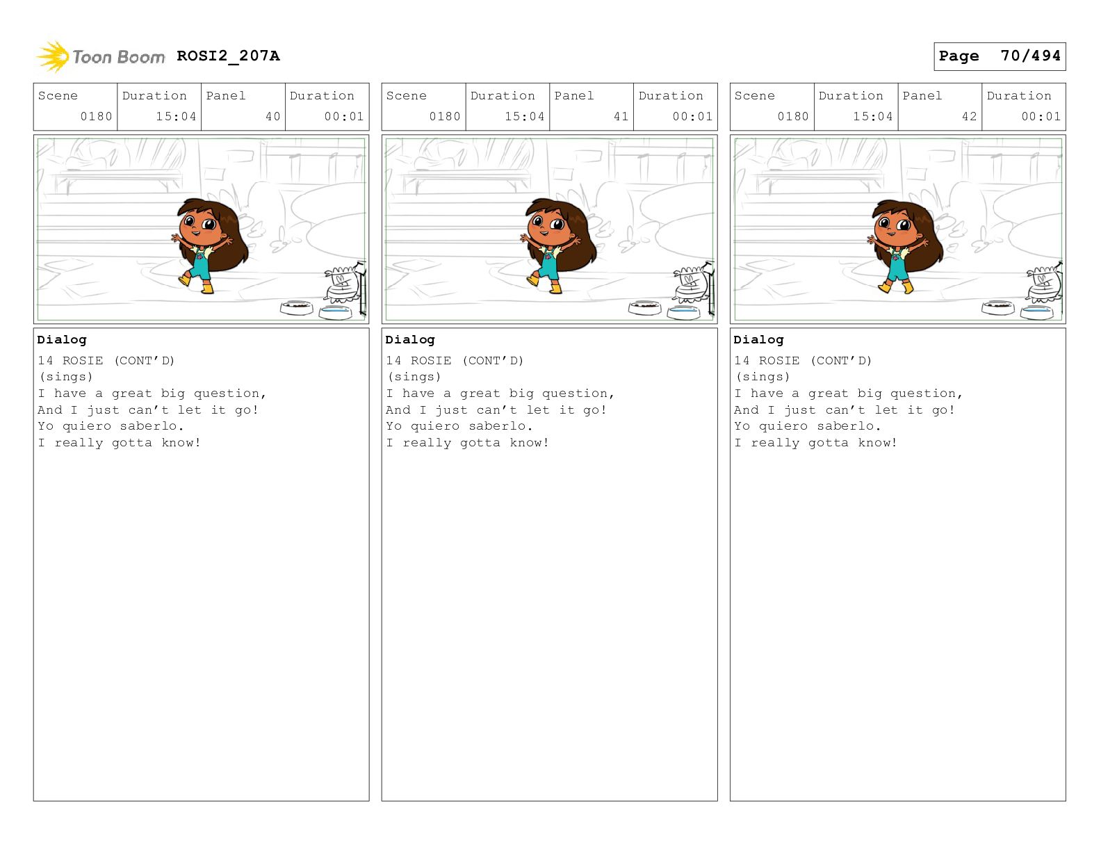 Crystal places two small bowls, a water pitcher, and a bag of rabbit food on the lawn. She pours water into a bowl. Scene 0140 Duration 06:02 Panel 02 Duration 00:18 Dialog 16 CRYSTAL This bowl’s for his water. And this one’s for his food. Action Notes Crystal places two small bowls, a water pitcher, and a bag of rabbit food on the lawn. She pours water into a bowl. Scene 0140 Duration 06:02 Panel 03 Duration 02:21 Dialog 16 CRYSTAL This bowl’s for his water. And this one’s for his food. Action Notes Crystal places two small bowls, a water pitcher, and a bag of rabbit food on the lawn. She pours water into a bowl. ROSI2_207A Page 41/494