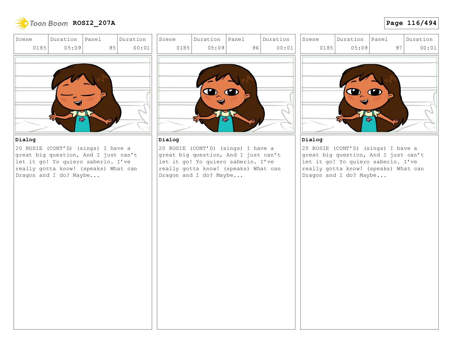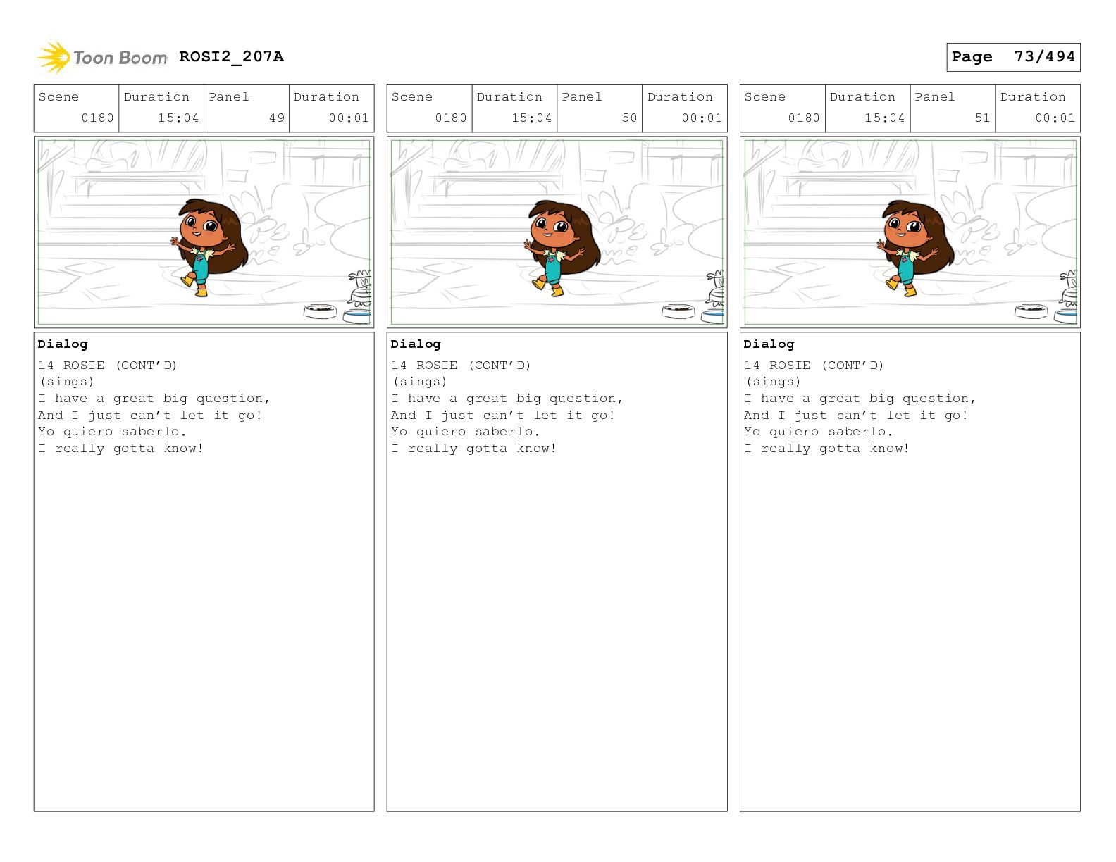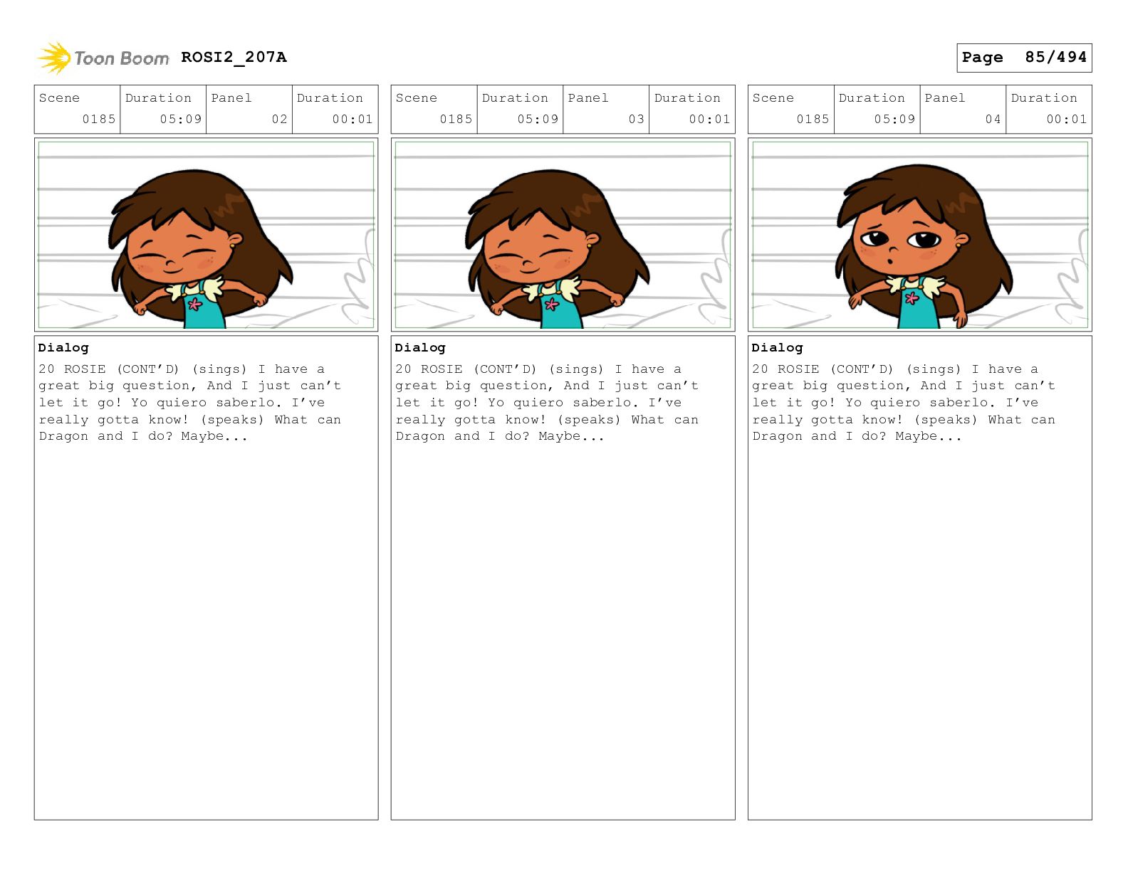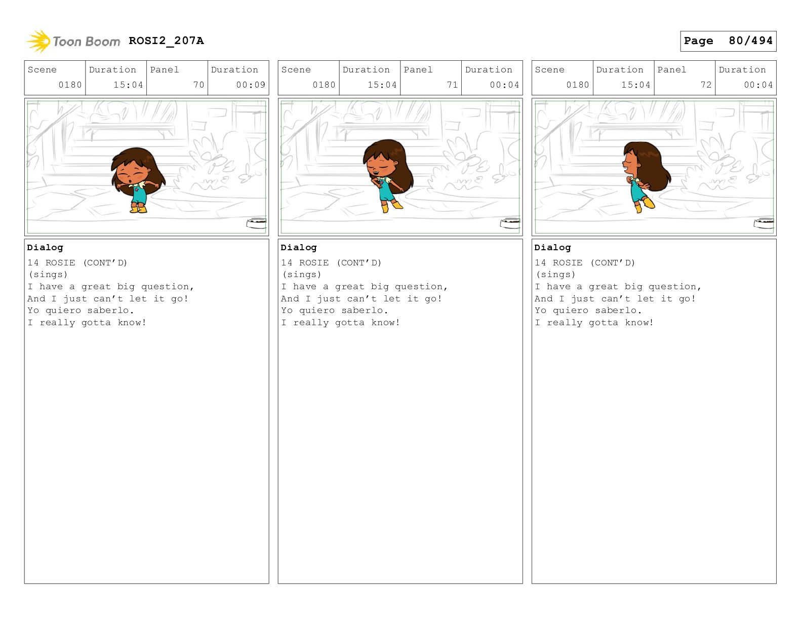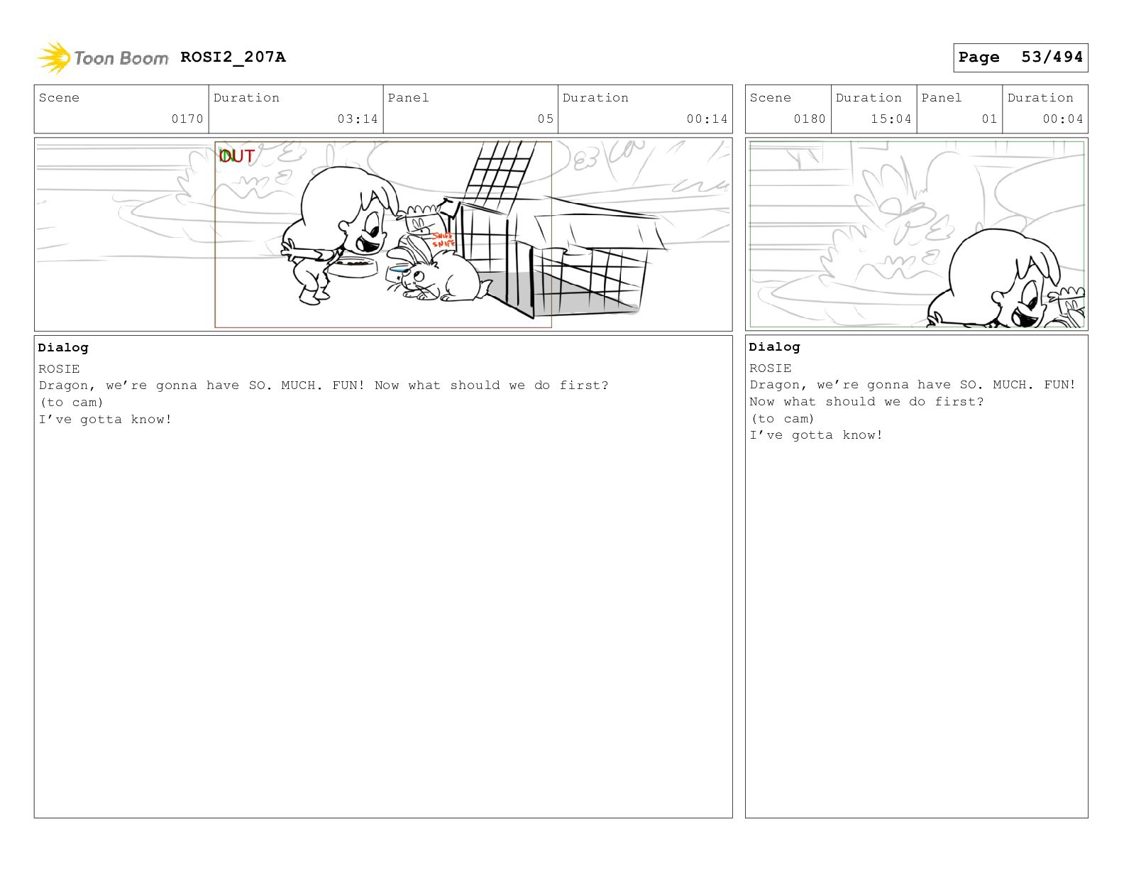 Crystal places two small bowls, a water pitcher, and a bag of rabbit food on the lawn. She pours water into a bowl. Scene 0140 Duration 06:02 Panel 02 Duration 00:18 Dialog 16 CRYSTAL This bowl’s for his water. And this one’s for his food. Action Notes Crystal places two small bowls, a water pitcher, and a bag of rabbit food on the lawn. She pours water into a bowl. Scene 0140 Duration 06:02 Panel 03 Duration 02:21 Dialog 16 CRYSTAL This bowl’s for his water. And this one’s for his food. Action Notes Crystal places two small bowls, a water pitcher, and a bag of rabbit food on the lawn. She pours water into a bowl. ROSI2_207A Page 41/494