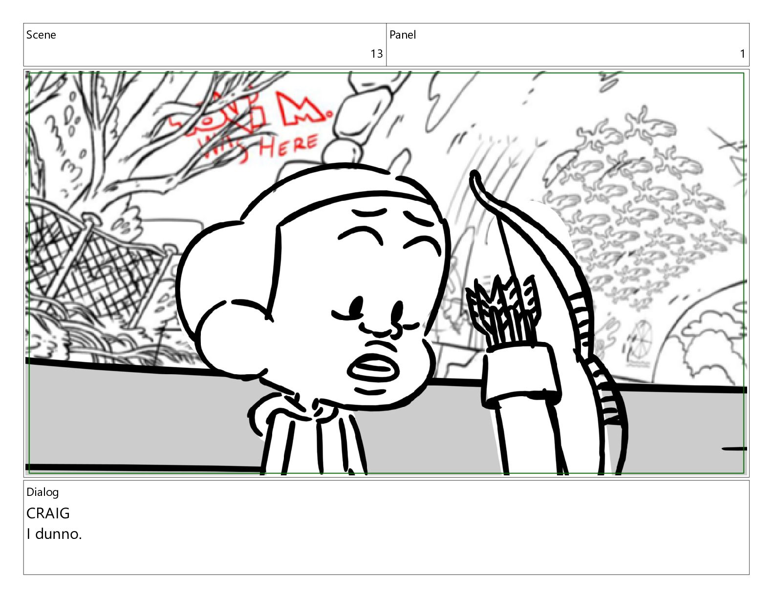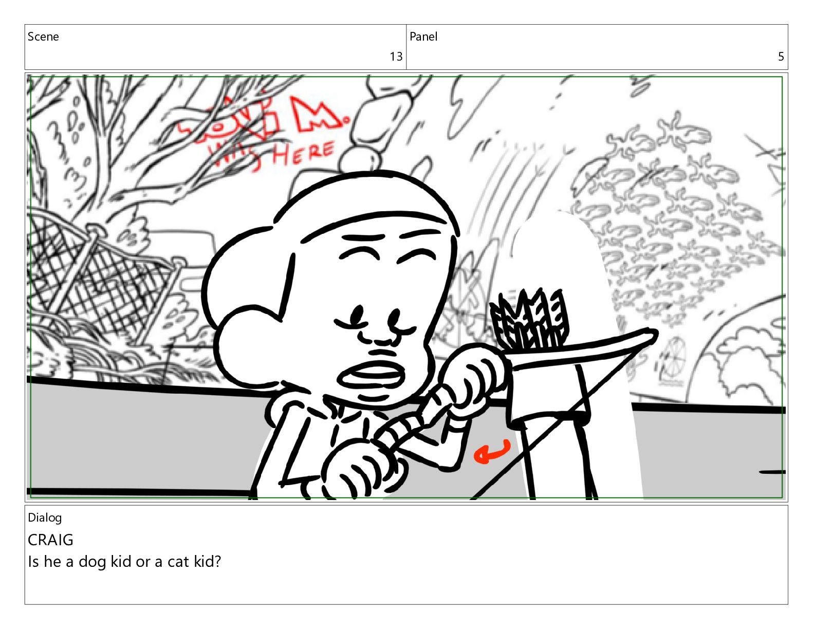 Board by Dashawn Mahone for Cartoon Network's Craig of the Creek. This was the version before notes, cuts, etc.
