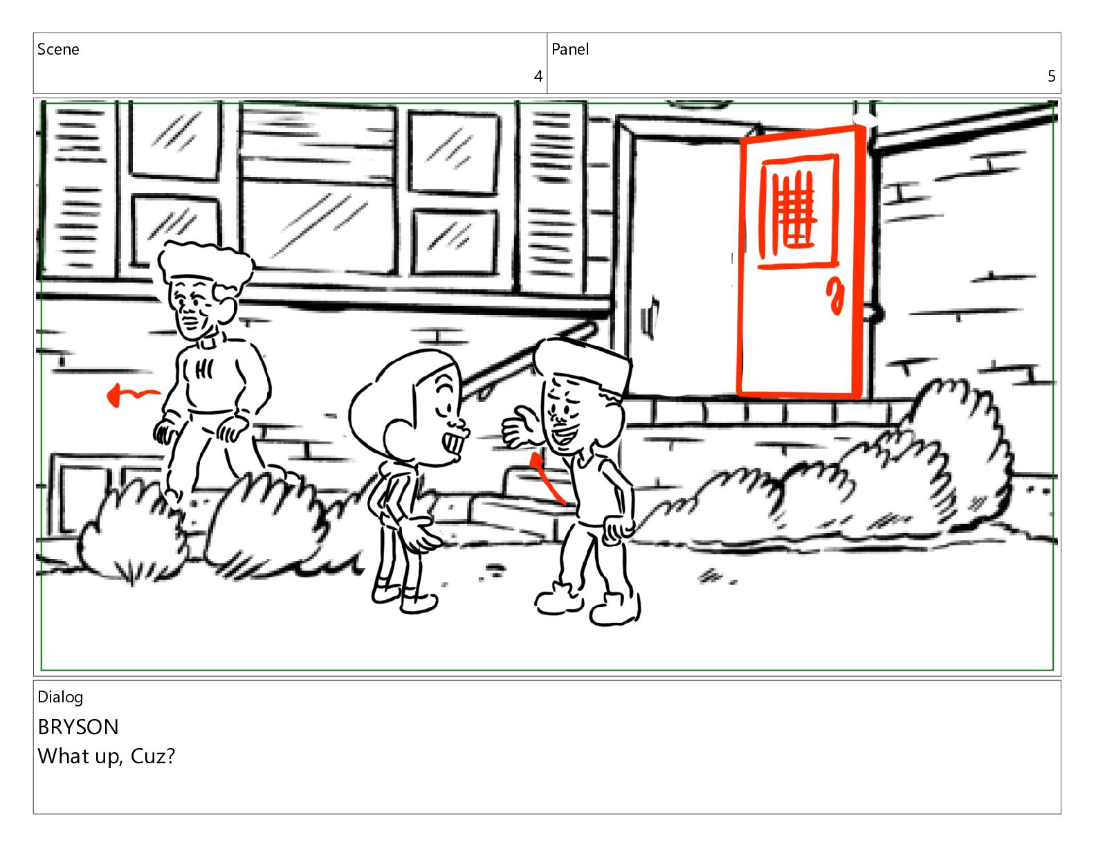 Scene 4 Panel 5 Dialog BRYSON What up, Cuz?