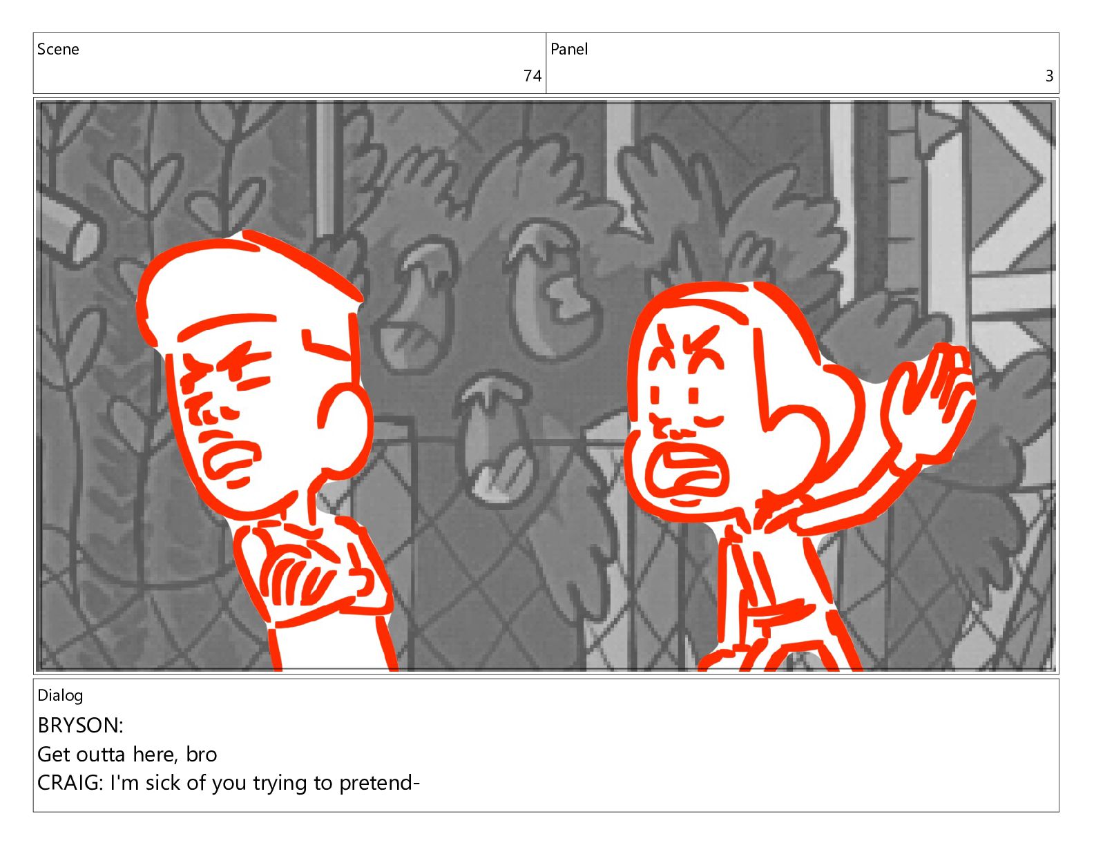 Scene 74 Panel 3 Dialog BRYSON: Get outta here, bro