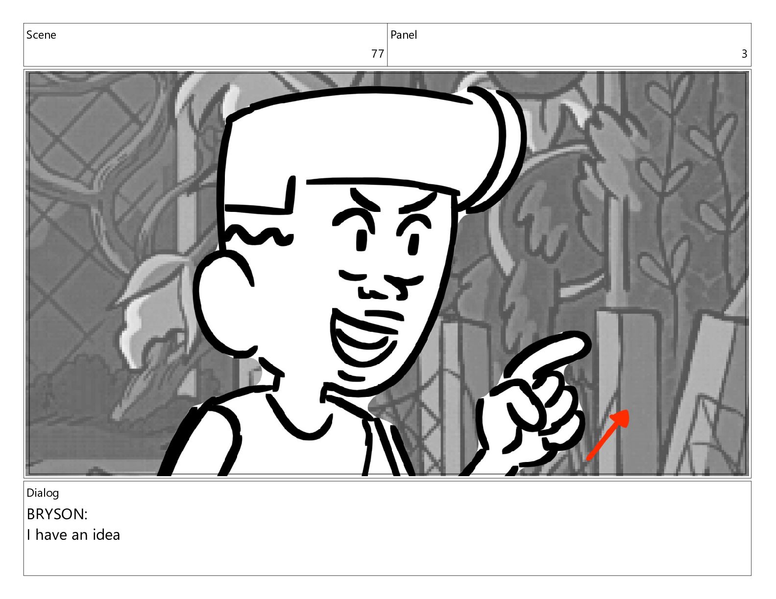 Scene 77 Panel 3 Dialog BRYSON: I have an idea