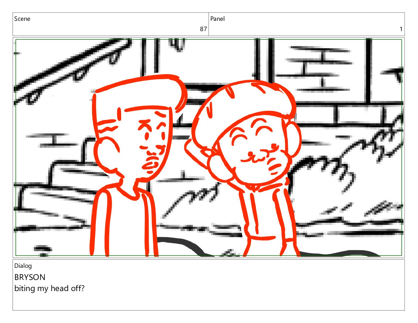 Scene 87 Panel 1 Dialog BRYSON biting my head off?