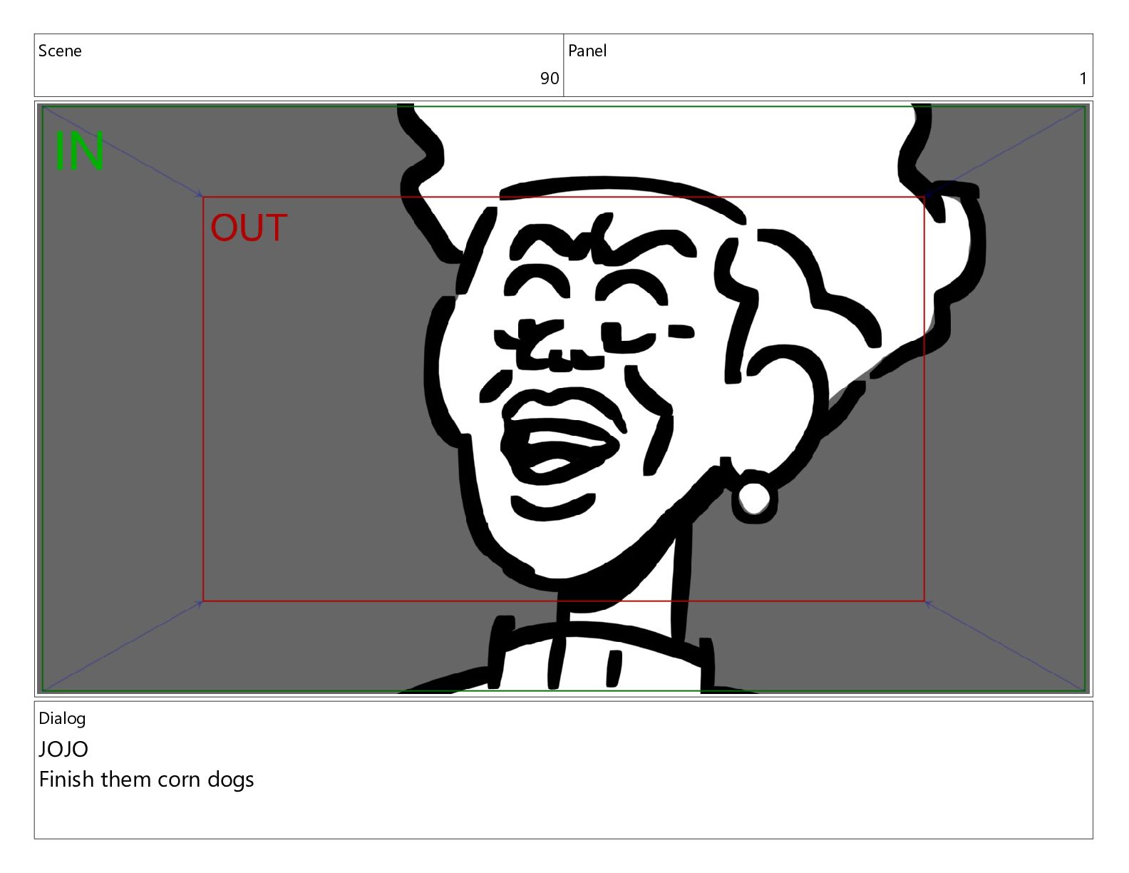 Scene 90 Panel 1 Dialog JOJO Finish them corn dogs