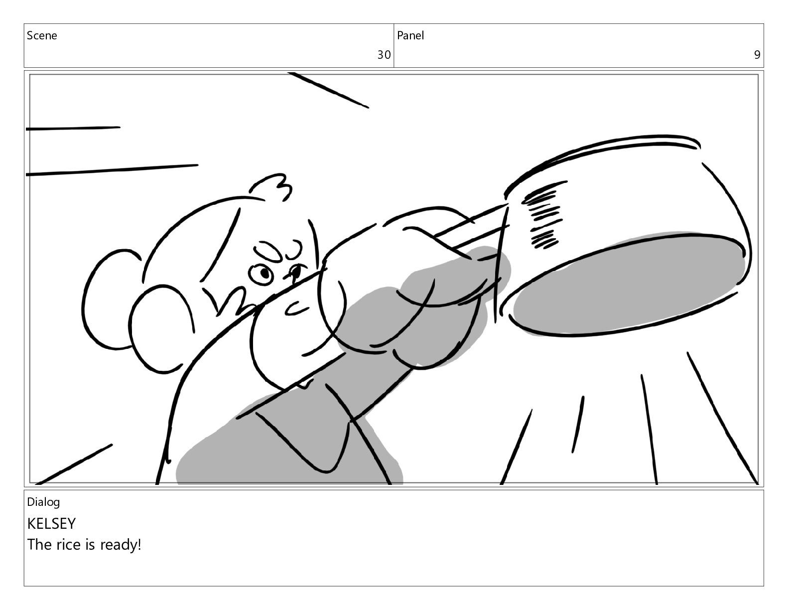 Scene 30 Panel 9 Dialog KELSEY The rice is ready!