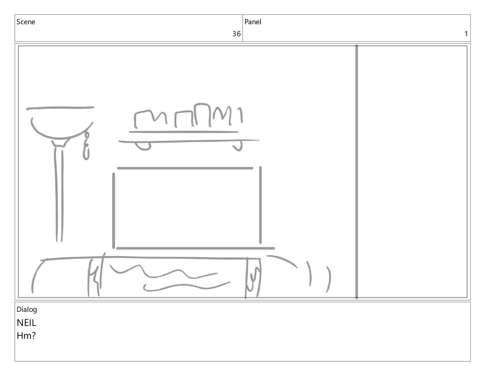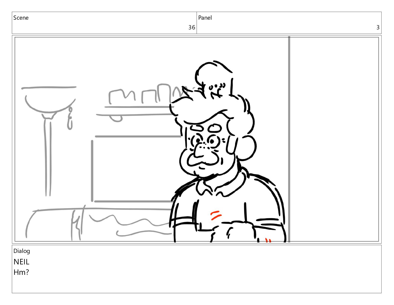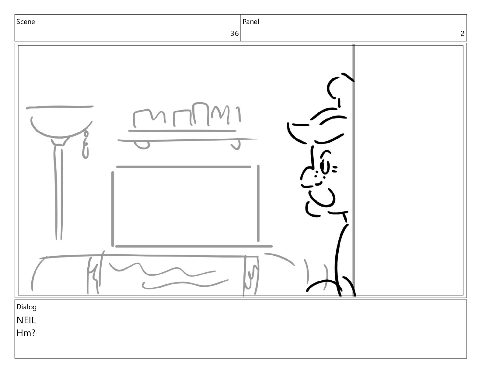 Scene 36 Panel 3 Dialog NEIL Hm?