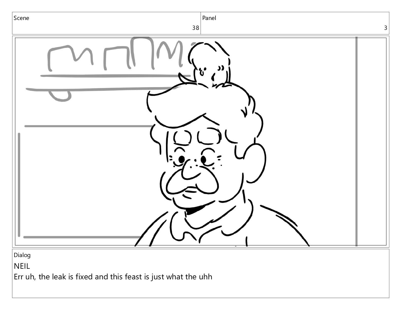 Scene 38 Panel 3 Dialog NEIL Err uh, the leak