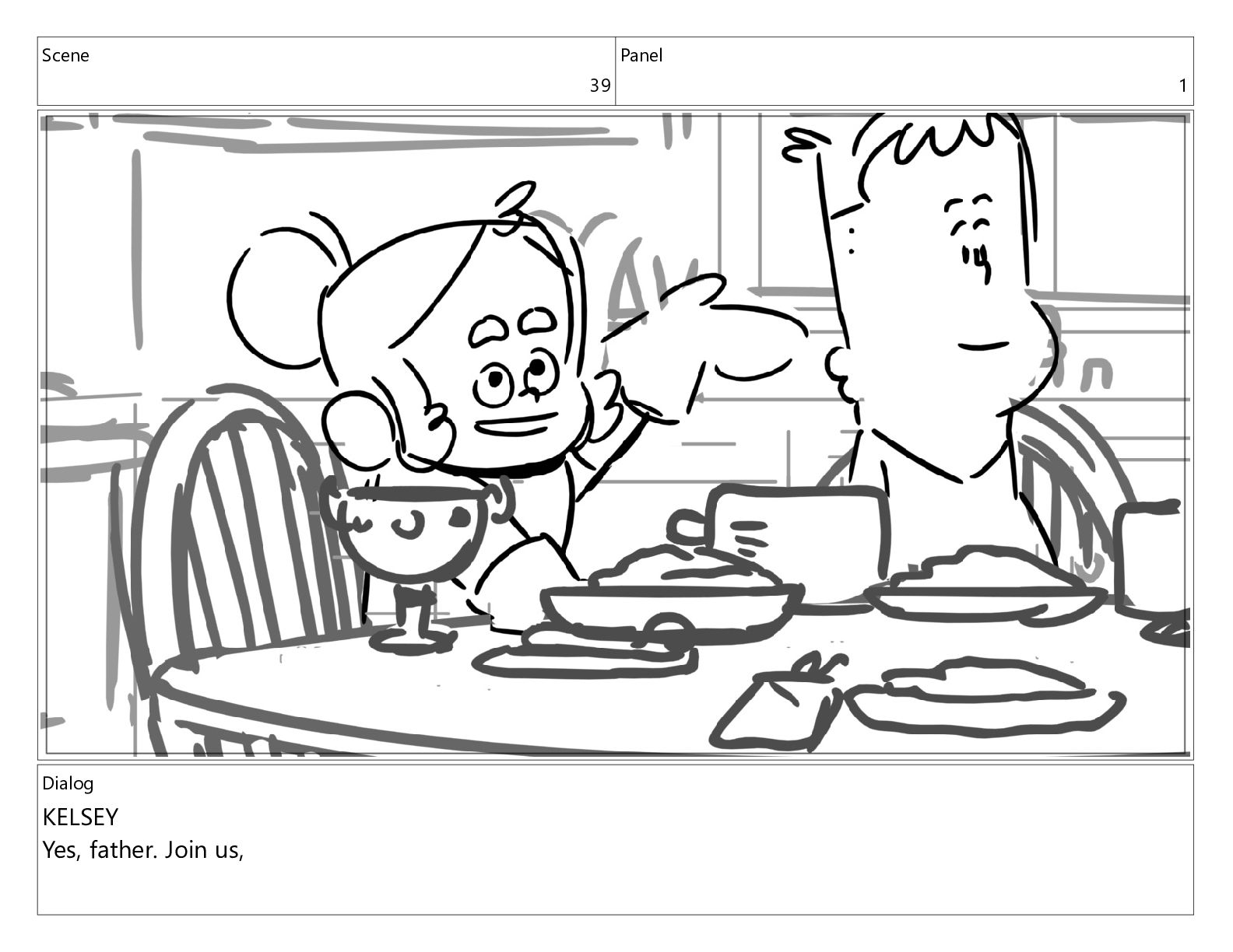 Scene 39 Panel 1 Dialog KELSEY Yes, father. Join us,