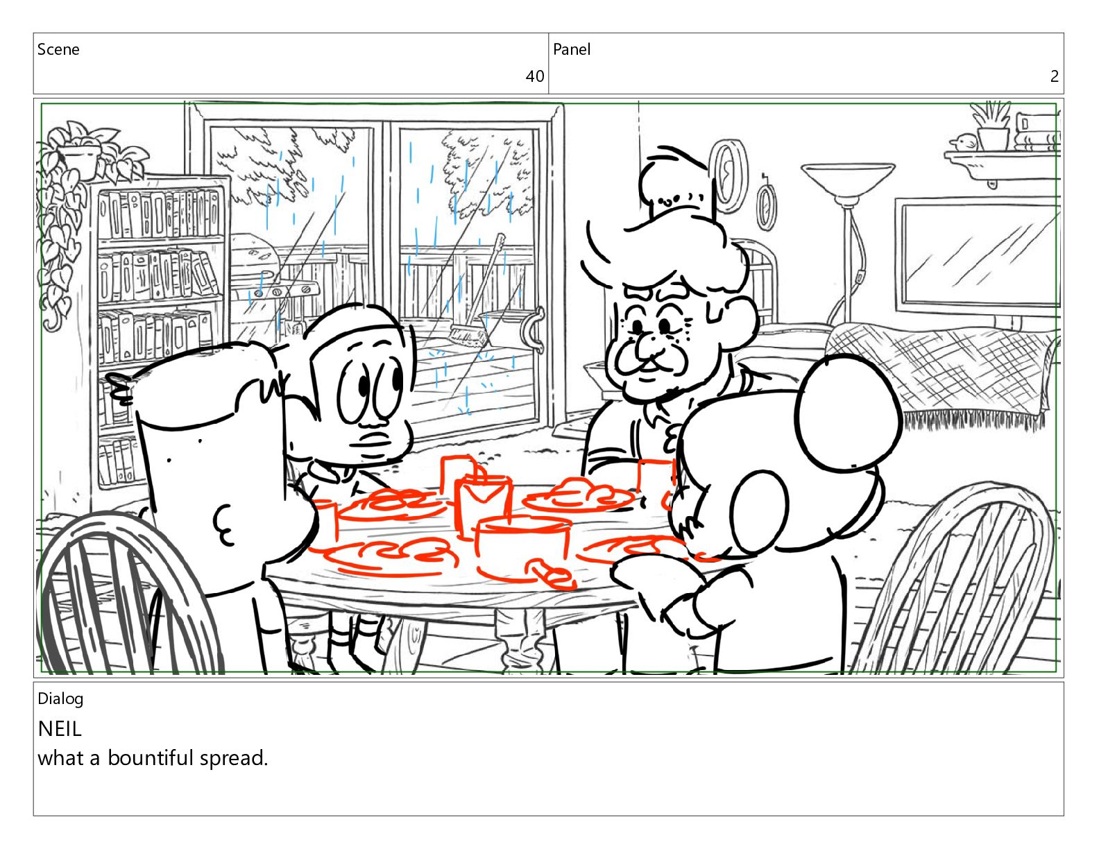 Scene 40 Panel 2 Dialog NEIL what a bountiful spread.