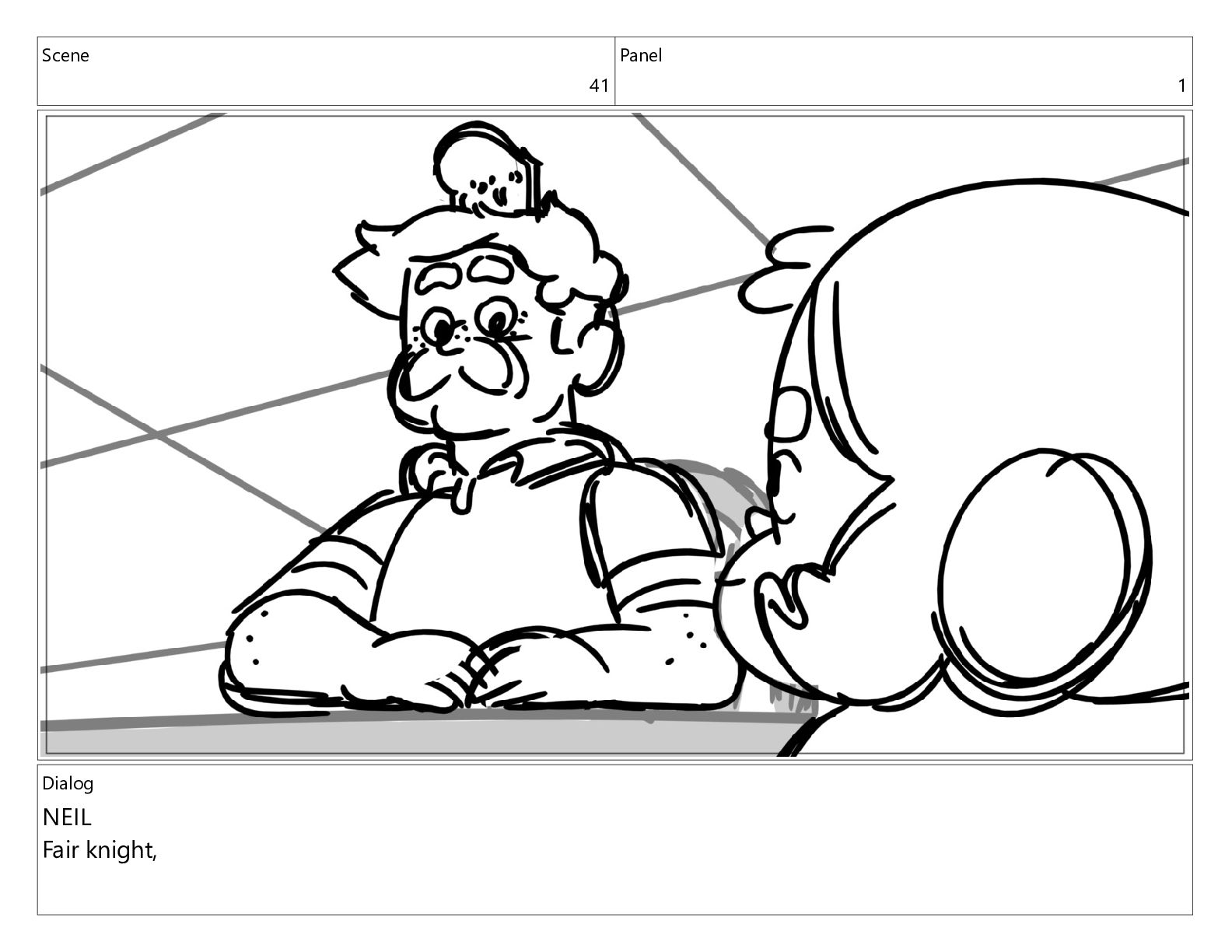 Scene 41 Panel 1 Dialog NEIL Fair knight,