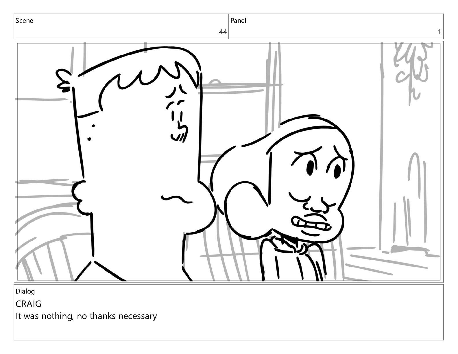 Scene 44 Panel 1 Dialog CRAIG It was nothing, no