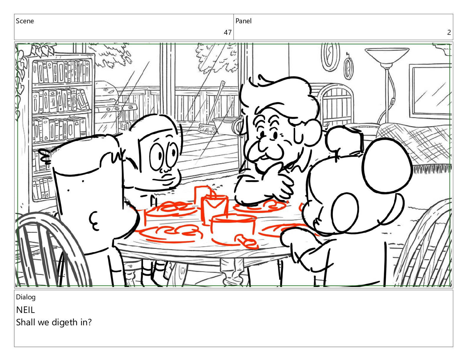 Scene 47 Panel 2 Dialog NEIL Shall we digeth in?