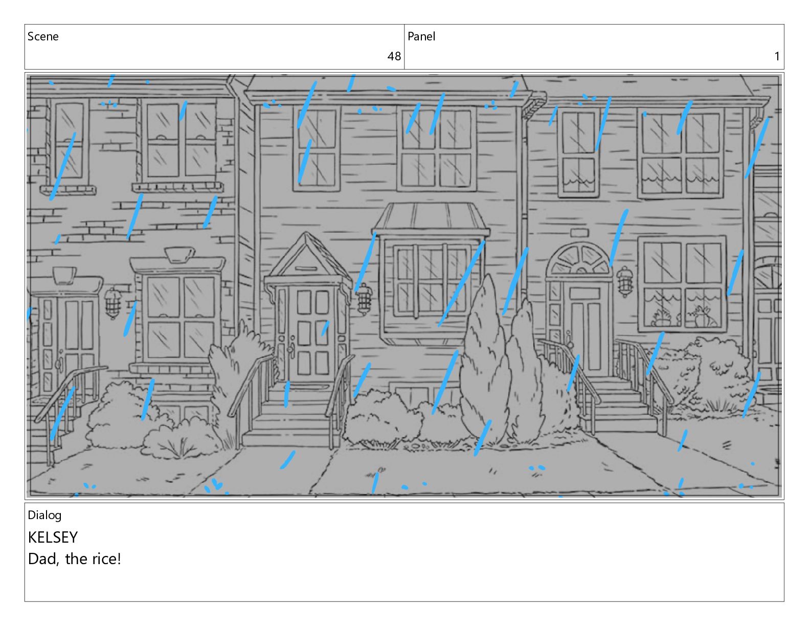 Scene 48 Panel 1 Dialog KELSEY Dad, the rice!