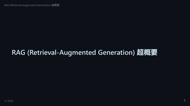 RAG (Retrieval-Augmented Generation) 超概要 RAG (Retrieval-Augmented Generation) 超概要 © 2025