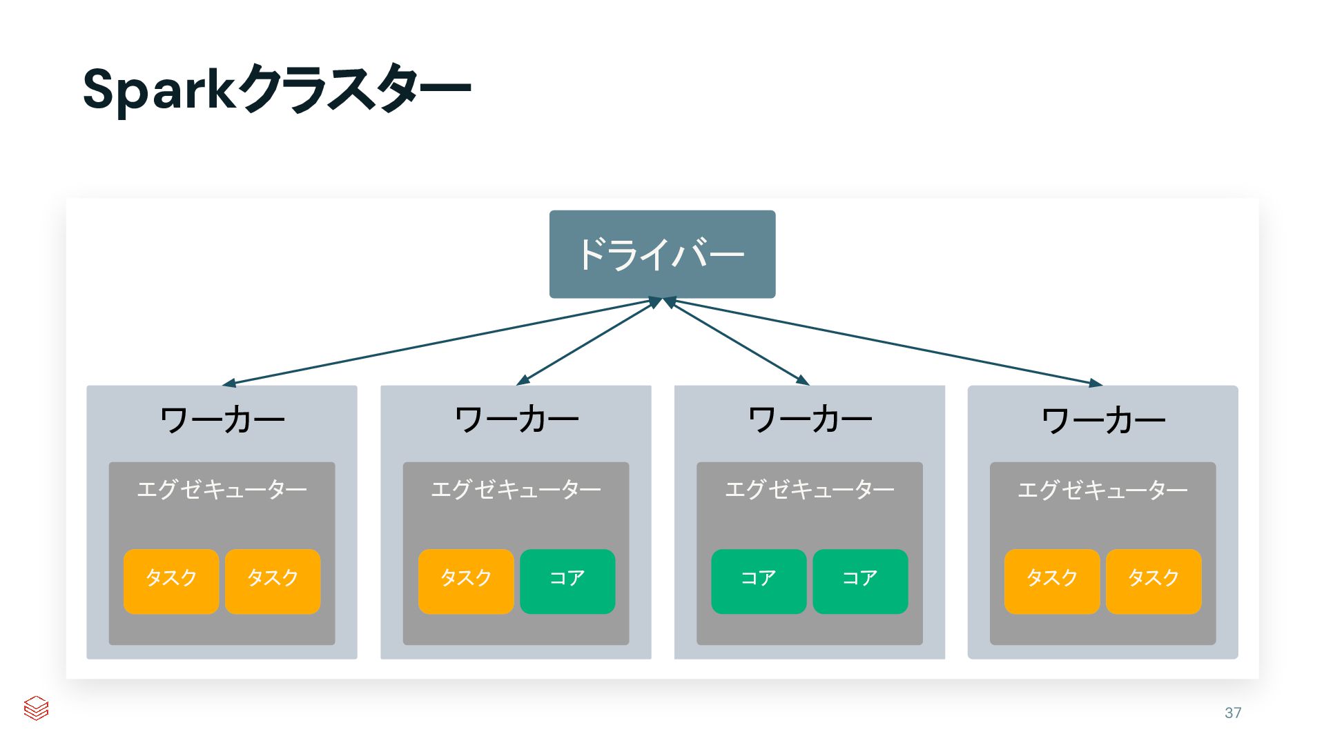 Core Core コア コア コア Core Core Sparkクラスター タスク タスク タスク タスク タスク 37
