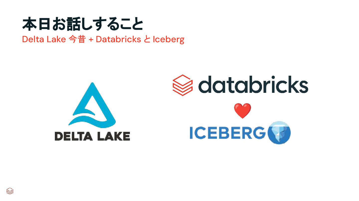 本日お話しすること Delta Lake 今昔 + Databricks と Iceberg ❤