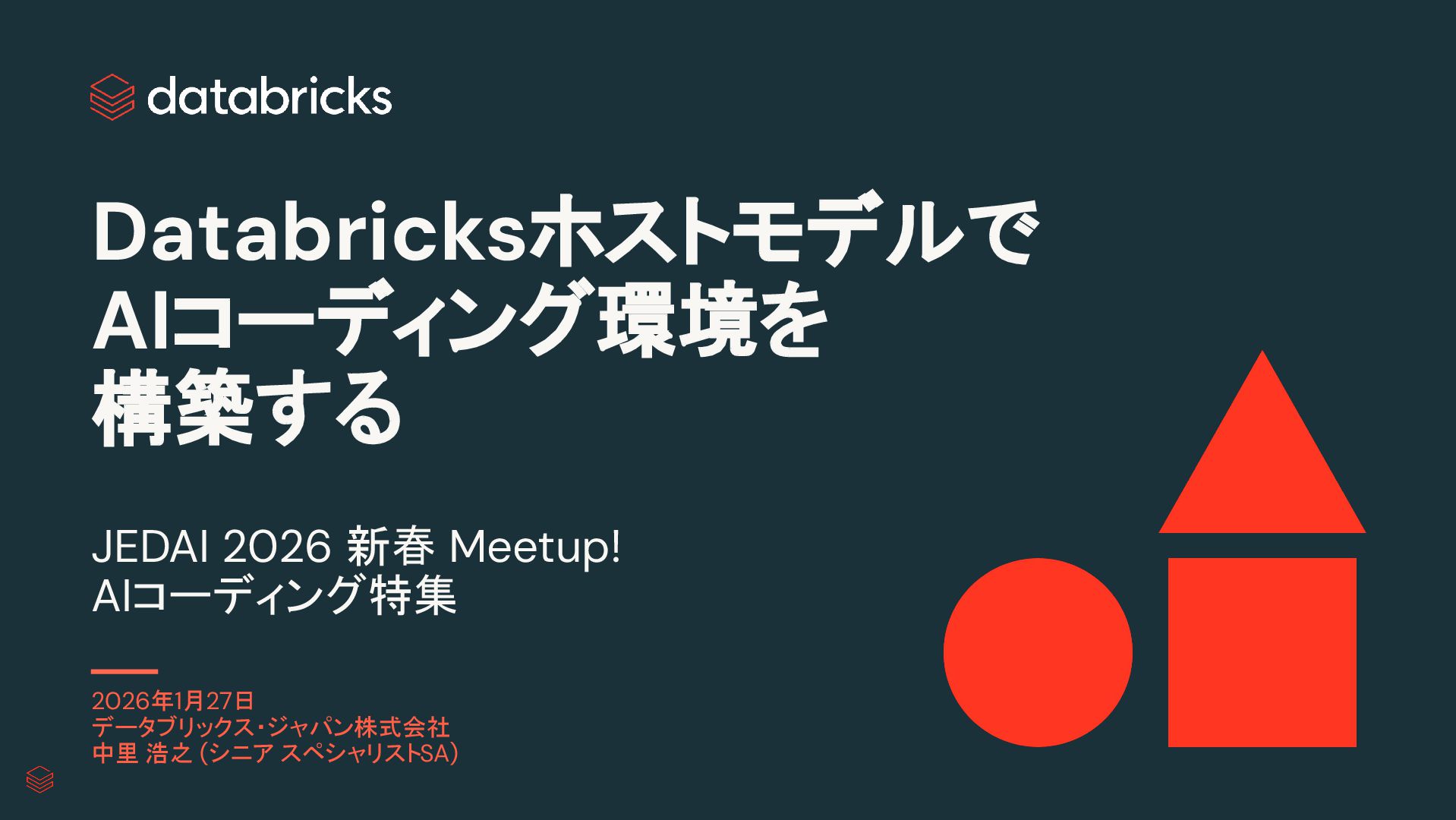 Databricksホストモデルで AIコーディング環境を 構築する JEDAI 2026 新春 Meetup! AIコーディング特集 2026年1月27日 データブリックス・ジャパン株式会社