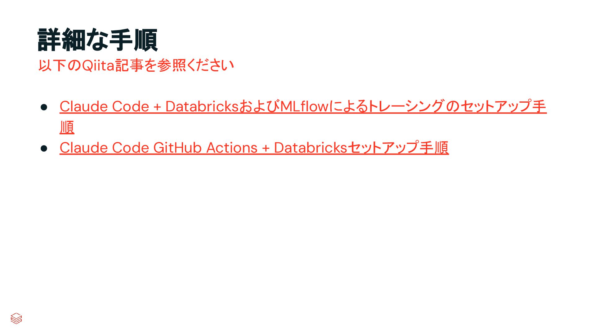 詳細な手順 • Claude Code + DatabricksおよびMLflowによるトレーシングのセットアップ手 順 • Claude Code