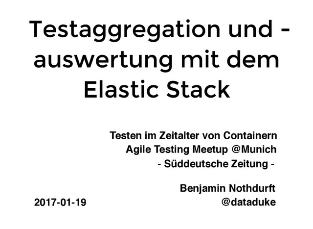 mit dem auswertung mit dem auswertung mit dem Elastic Stack Elastic Stack Elastic Stack @dataduke @dastianoro 2017-01-19 @dataduke Agile Testing Meetup @Munich Testen im Zeitalter von Containern Benjamin Nothdurft - Süddeutsche Zeitung -