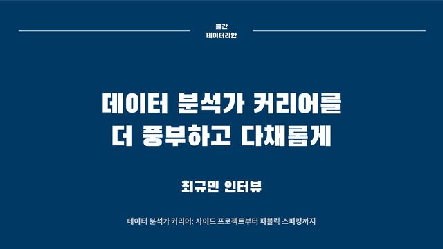 꾸준한 블로그 운영부터 사이드 프로젝트, 퍼블릭 스피킹까지 다양한 활동을 하고 계시는 최규민님을 인터뷰합니다. 데이터 분석가 커리어를 더 풍부하고 다채롭게 만들 수 있는 팁을 얻을 수 있을거예요. 덤으로, 추천 시스템을 만드는 팀에서 데이터 분석가는 무슨 일을 하는지도 들어보겠습니다.
