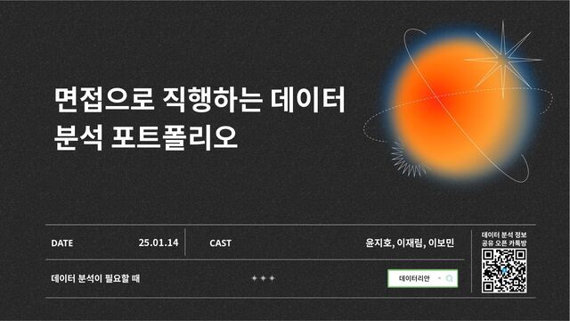 것, 반드시 필요한 것을 구분하세요. 2. 상대가 듣고 싶은 걸 말하세요. 3. 모르는 분야는 아는 사람에게 배우는게 가장 효율적입니다. 4. 쓸모 없는 경험은 없습니다. 데이터 분석가의 백그라운드는 정말 다양합니다. 5. 자기 확신과, 열정과, 그에 합당한 논리를 보여주셔야 합니다.