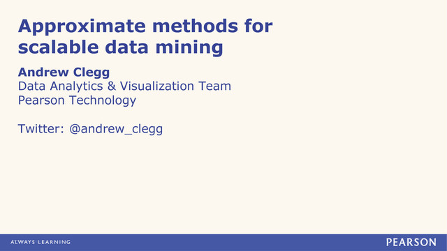 are approximate methods? Trading accuracy for scalability • Often use probabilistic data structures – a.k.a. sketches or signatures • Mostly stream-friendly – Allow you to query data you haven’t even kept! • Generally simple to parallelize • Predictable error rate (can be tuned)