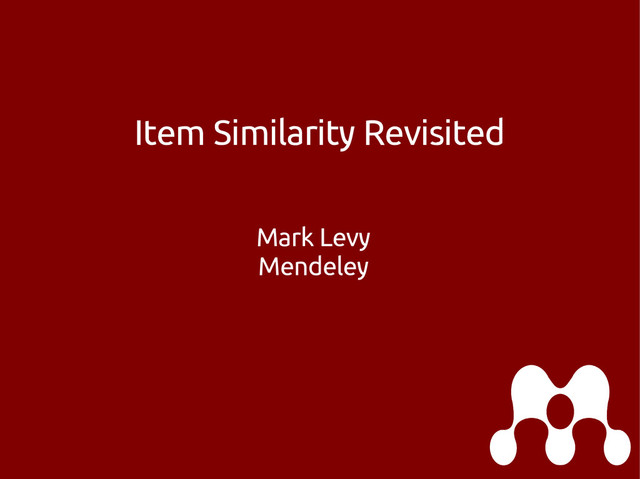 problem – with a constrained target item set • Possible state of the art c. April 2013: – pimped old skool neighbourhood method – matrix factorization and then neighbourhood – something dynamic (?) – SLIM • Use some side data