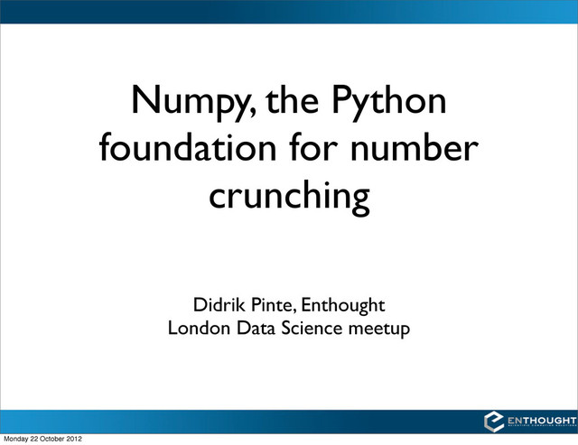 Talk by Didrik Pinte, MD at Enthought at Data Science London meetup 18/10/12