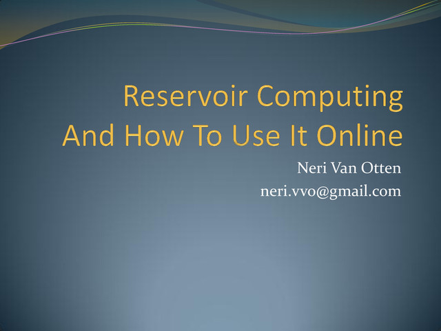 engineering problems learn by example model highly nonlinear systems Training phase is slow and unstable Reservoir Computing avoids this problem by not training it at all