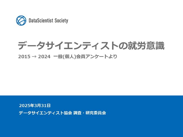 データサイエンティストの特徴、スキル、企業に対する要望、業務満足度、将来性などを定点で把握することで、企業とデータサイエンティストのマッチングに関する現状を明らかにしています。