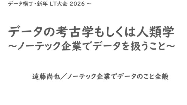 データの考古学もしくは人類学 ~ノーテック企業でデータを扱うこと~ 遠藤尚也/ノーテック企業でデータのこと全般 データ横丁・新年 LT大会 2026 ~