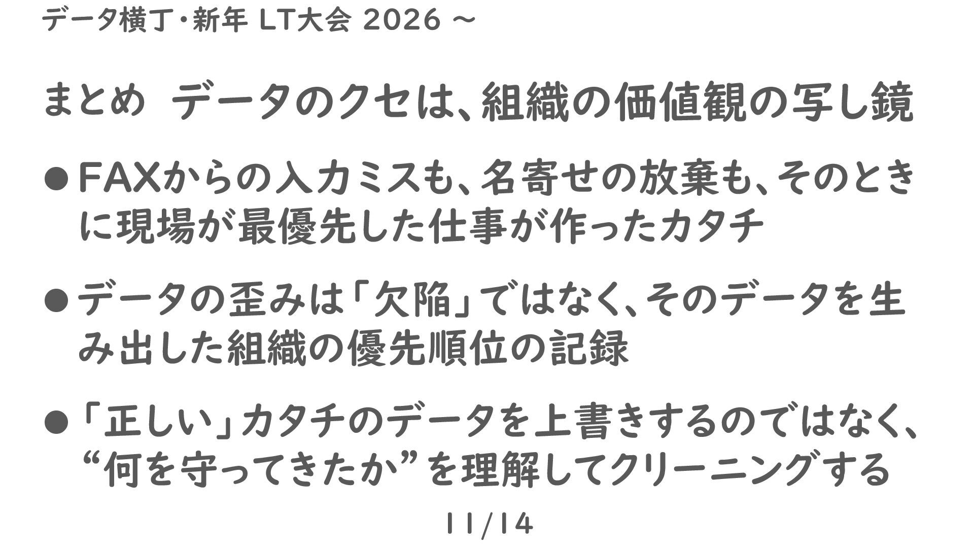 person’s GOLD. 14/14 データ横丁・新年 LT大会 2026 ~