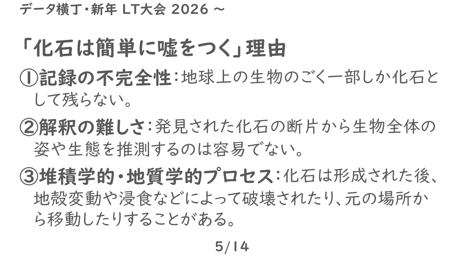 化石は簡単に嘘をつく 2/14 データ横丁・新年 LT大会 2026 ~