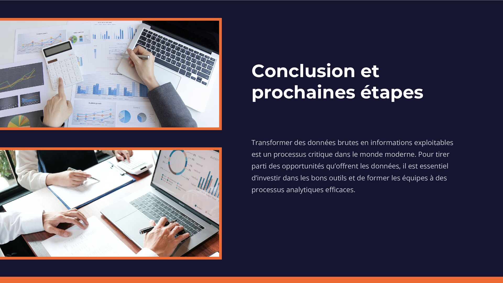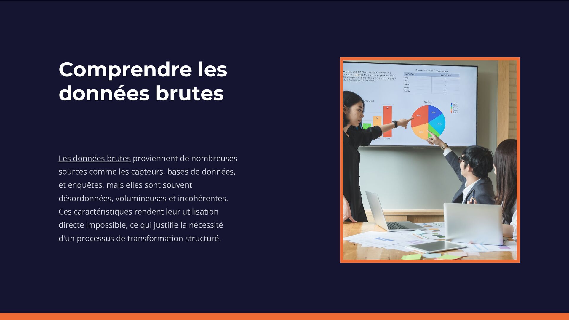 Cette présentation donne un aperçu détaillé du processus de collecte, de nettoyage et de traitement des données brutes pour en extraire des informations utiles. Elle explique les étapes clés de la transformation, le rôle des outils tels qu’Excel, Python et Tableau, ainsi que la manière dont les techniques d’analyse structurée et de visualisation facilitent la prise de décision. Des exemples concrets et des solutions pratiques aux défis comme la qualité et la sécurité des données y sont présentés. Pour plus d'informations, visitez https://datazure.io/