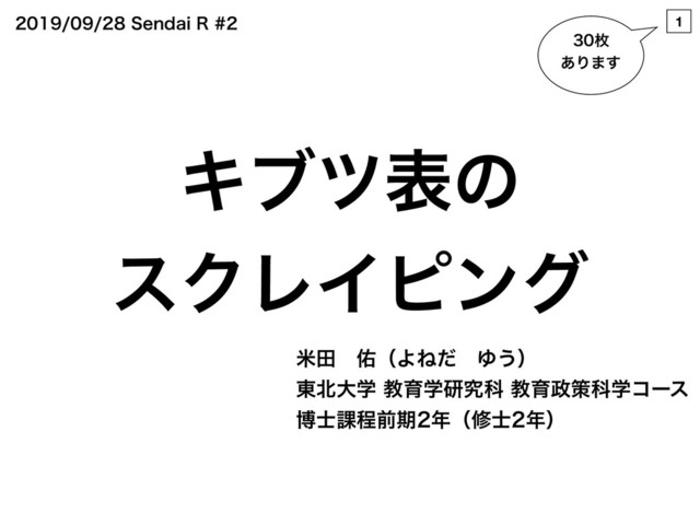 1 4FOEBJ3 Ωϒπදͷ εΫϨΠϐϯά ถాɹ༎ʢΑͶͩɹΏ͏ʣ ౦େֶڭҭֶݚڀՊڭҭࡦՊֶίʔε ത࢜՝ఔલظʢम࢜ʣ ຕ ͋Γ·͢