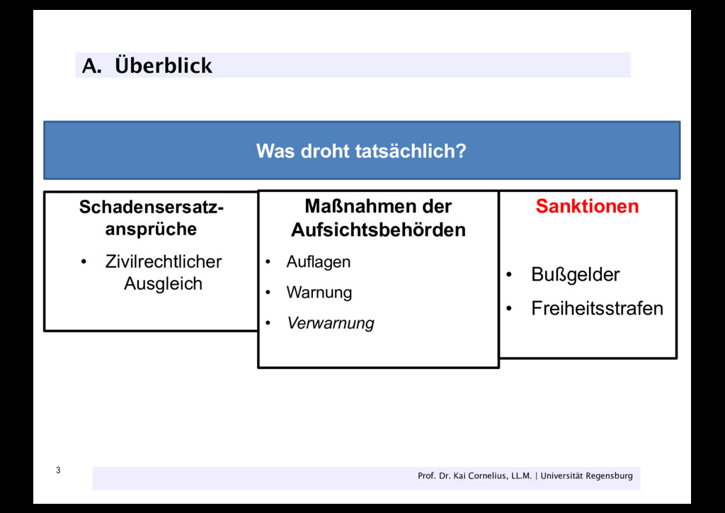 Aufsichtsbehörden • Auflagen • Warnung • Verwarnung Sanktionen • Bußgelder • Freiheitsstrafen A. Überblick Prof. Dr. Kai Cornelius, LL.M. | Universität Regensburg 3