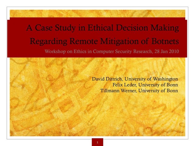 It is becoming more common for researchers to find themselves in a position of being able to take over control of a malicious botnet. If this happens, should they use this knowledge to clean up all the infected hosts? How would this affect not only the owners and operators of the zombie computers, but also other researchers, law enforcement agents serving justice, or even the criminals themselves? What dire circumstances would change the calculus about what is or is not appropriate action to take? We review two case studies of long-lived malicious botnets that present serious challenges to researchers and responders and use them to illuminate many ethical issues regarding aggressive mitigation. We make no judgments about the questions raised, instead laying out the pros and cons of possible choices and allowing workshop attendees to consider how and where they would draw lines. By this, we hope to expose where there is clear community consensus as well as where controversy or uncertainty exists.