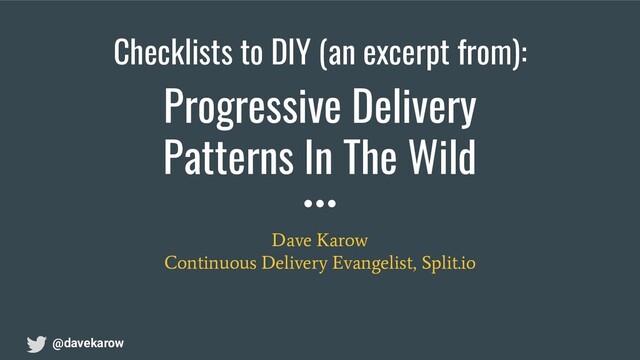 replace the “big bang” release night with more frequent, less stressful rollouts. Build on the foundational capabilities to: ❏ Ramp in stages, starting with dev team, then dogfooding, then % of public ❏ Monitor at feature rollout level, not just globally (vivid facts vs faint signals) ❏ Alert at the team level (build it/own it) ❏ Kill if severe degradation detected (stop the pain now, triage later) ❏ Continue to ramp up healthy features while “sick” are ramped down or killed How-To: Release Faster With Less Risk @davekarow