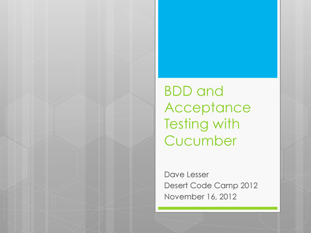 tests written in a behavior- driven development style Describes the desired software behavior in business-readable English Encourages tests to be defined/written by…wait for it…the business (gasp!)