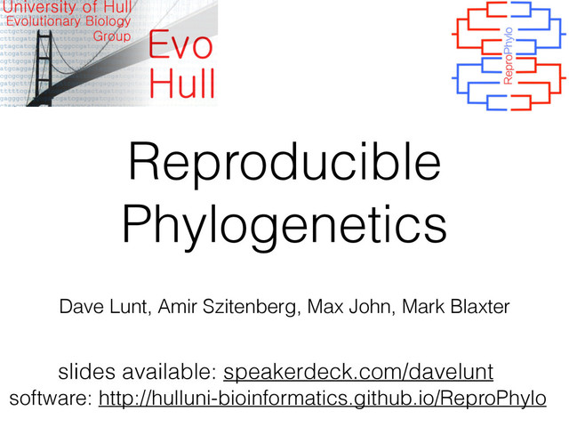 slides available: speakerdeck.com/davelunt software: http://hulluni-bioinformatics.github.io/ReproPhylo