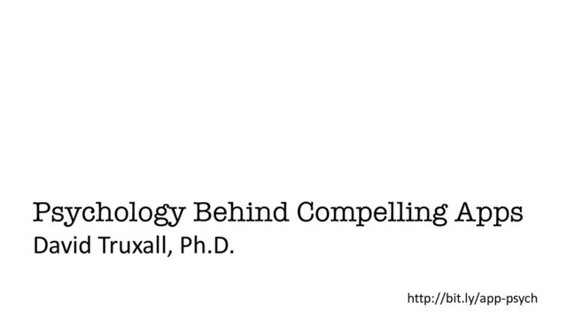 An unfortunate truth about software is that most users don't stick with new apps very long. Sadly, there is no one secret, but addressing human psychology can make your code more compelling for users. This session examines the human psychology behind what makes some software stick and become part of our daily routine. As a developer, you need to employ these ideas when designing features you plan to implement or products you plan to launch. This session covers three separate techniques rooted in psychology you can implement to make your user's experience awesome and keep them coming back.
