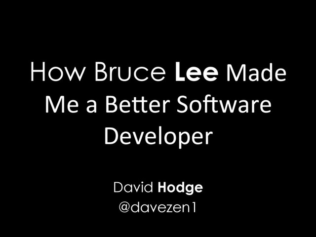 The martial artist Bruce Lee developed a philosophy called Jeet Kune Do, which borrowed from other martial arts. After practicing Jeet Kune Do, David realized there were parallels in software development. David explains how Bruce Lee can make improvements to your software development.
