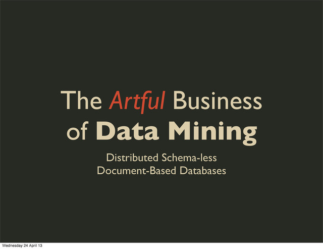 During this talk we analyse the composition of "documents" in the context of a document-based database, and cover the basic principles of Map-Reduce and its potential use in the context of computational statistics.