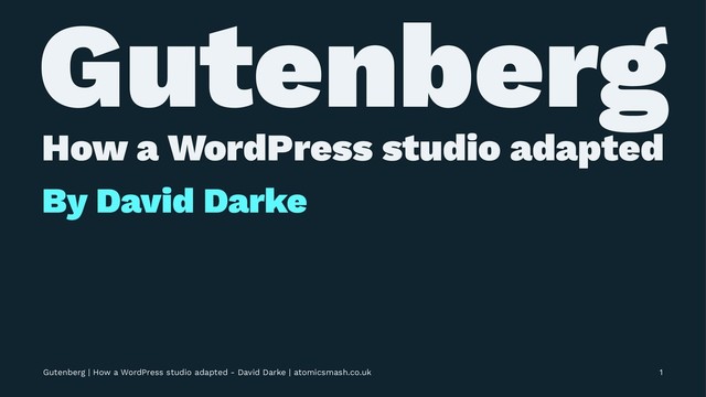 LOT — It allowed us to fix the core version and pre-load the classic editor — Pre Xmas 2018 we updated a couple of sites to 5.0 (with classic editor installed) — Released December 6th, 2018 (Atomic Smash holiday started on the 19th) Gutenberg | How a WordPress studio adapted - David Darke | atomicsmash.co.uk 36