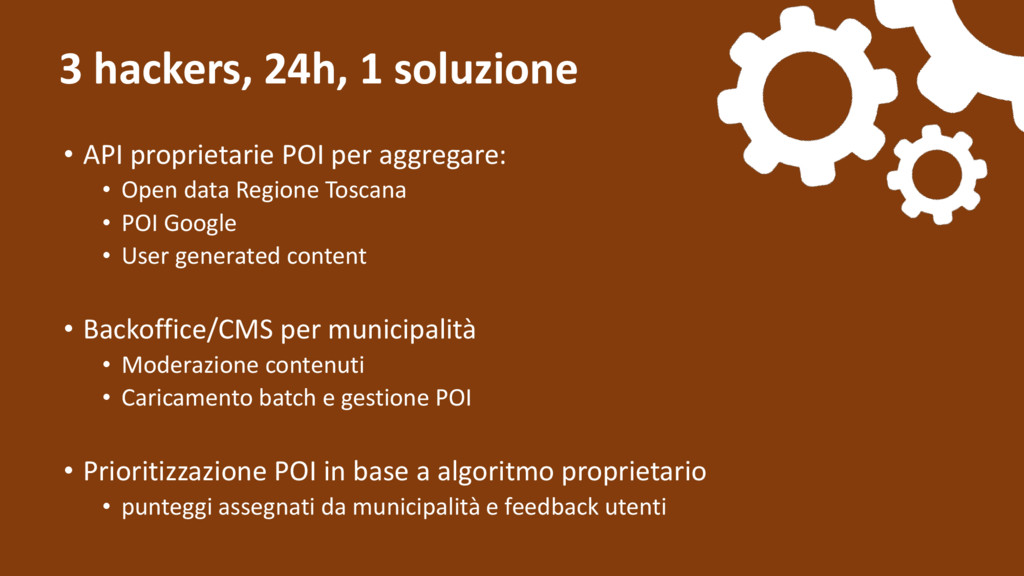 Il progetto Toscana Segreta si è classificato secondo all'hackaton promosso da Regione Toscana, ricevendo una menzione speciale da uno degli sponsor dell'hackaton (Engineering) e riscuotendo un grande successo del pubblico.