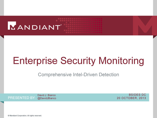 Bianco [email protected] @DavidJBianco detect-respond.blogspot.com Please fill out your speaker evals! Honest feedback is much appreciated https://www.surveymonkey.com/s/BSidesDC13-Speaker