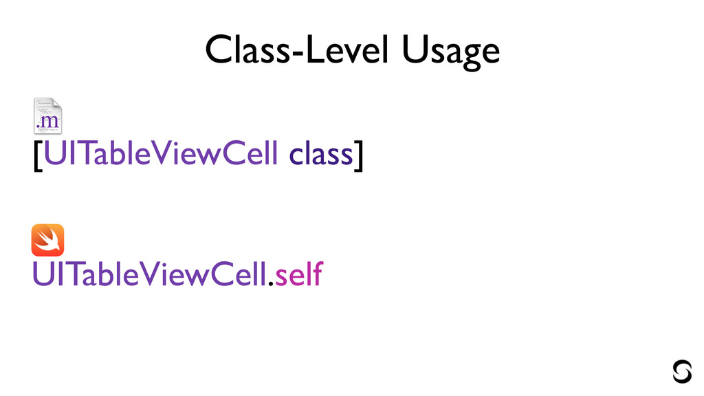 Class-Level Usage ! [UITableViewCell class] ! ! UITableViewCell.self