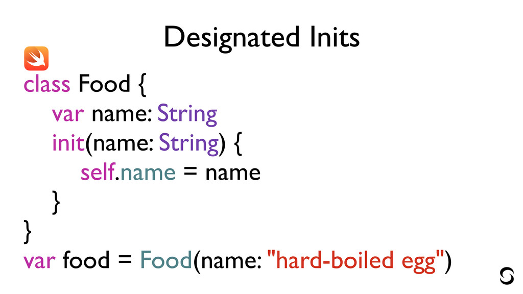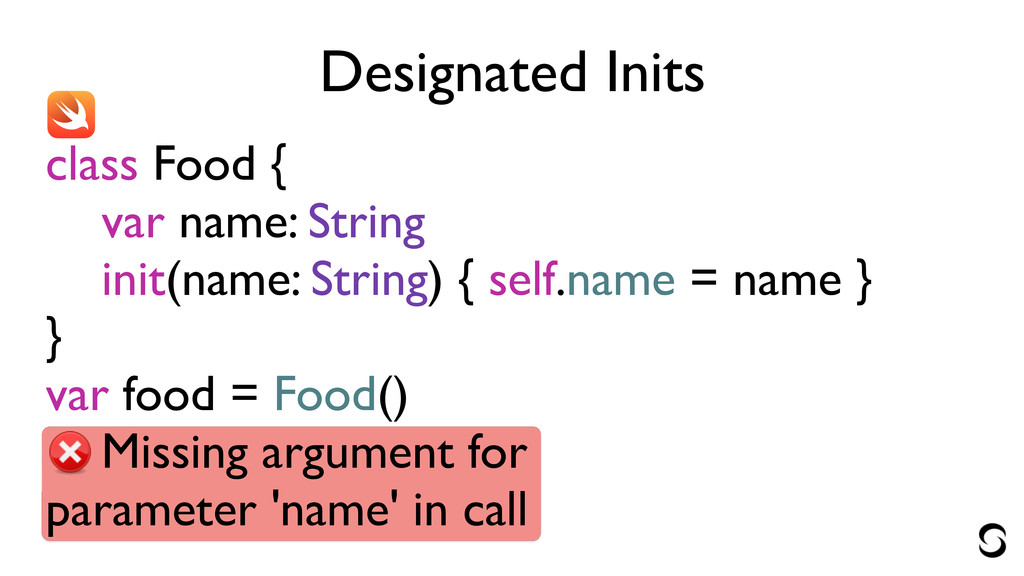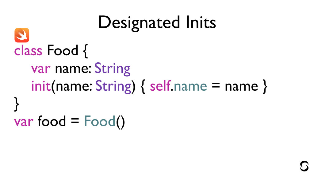 Designated Inits class Food { var name: String init(name: String)