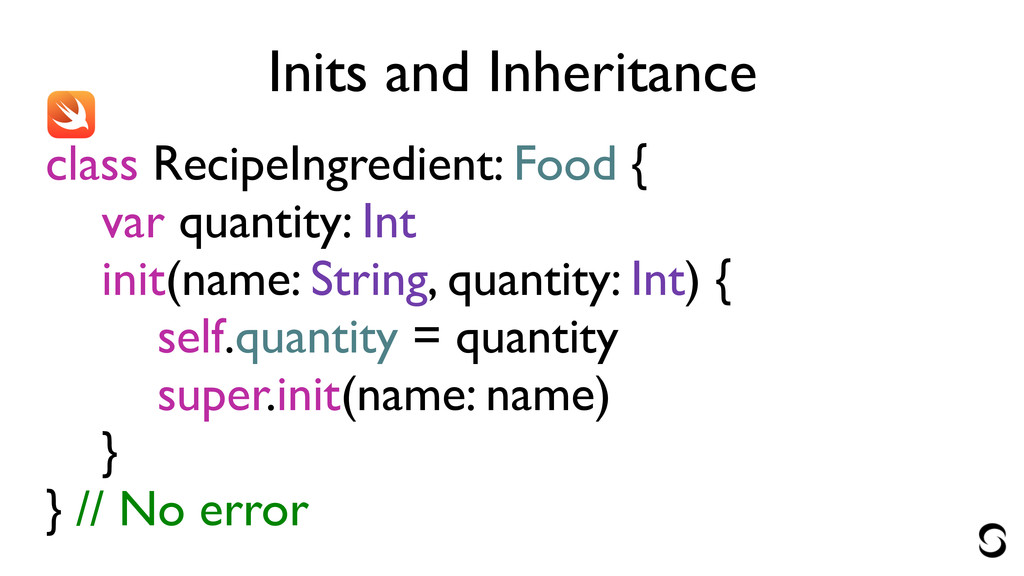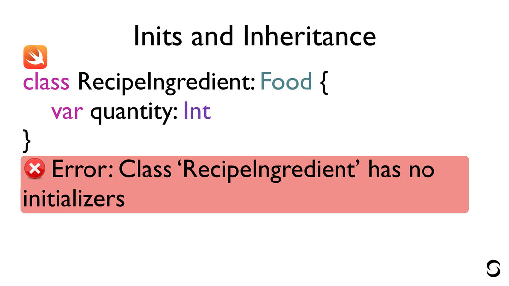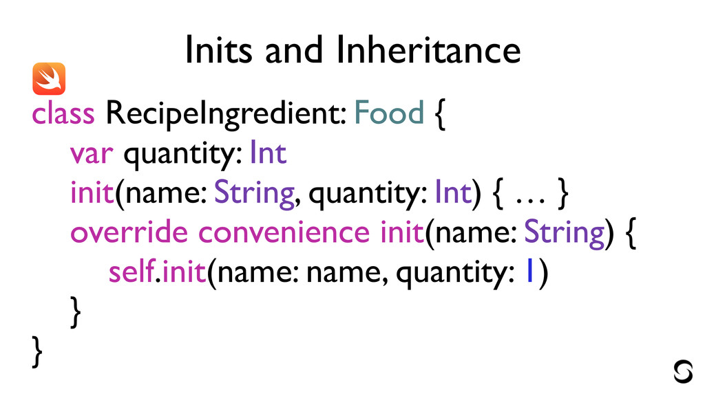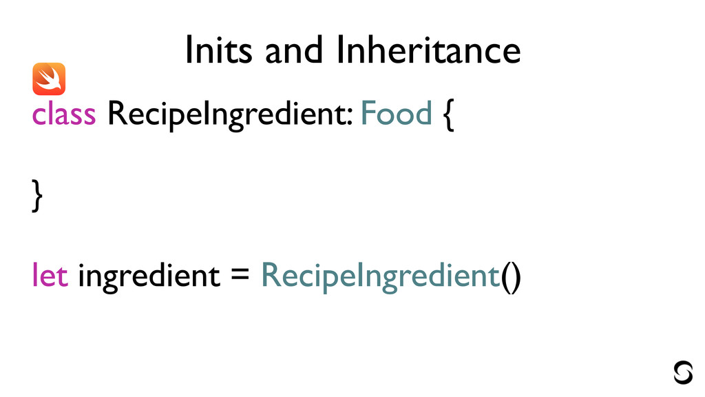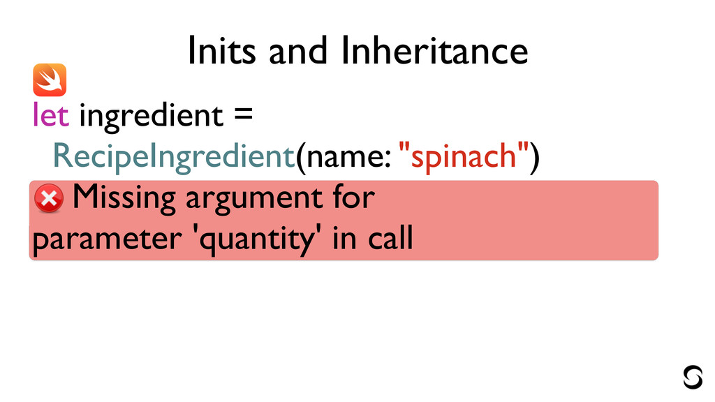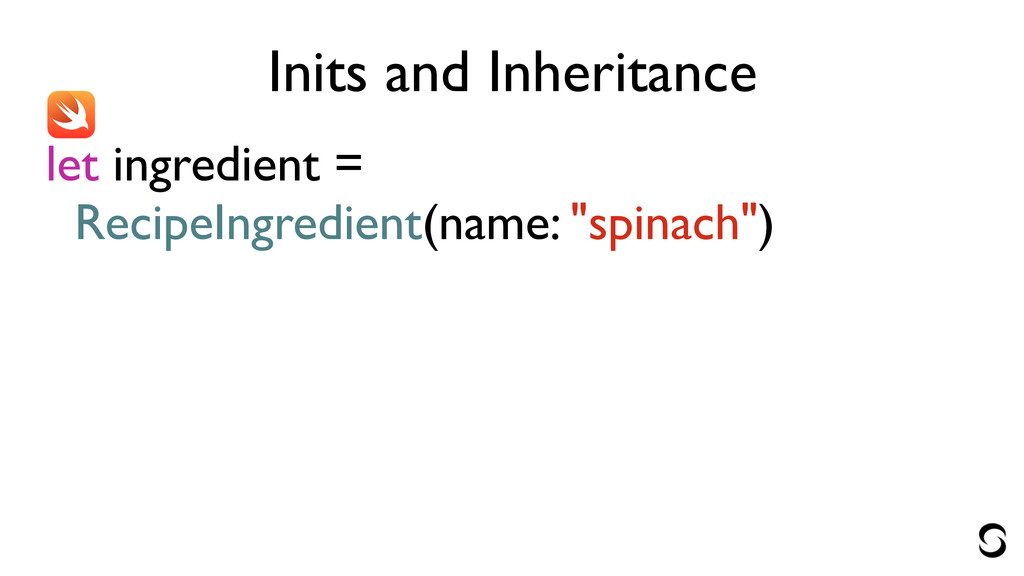 Inits and Inheritance let ingredient = RecipeIngredient(name: "spinach")