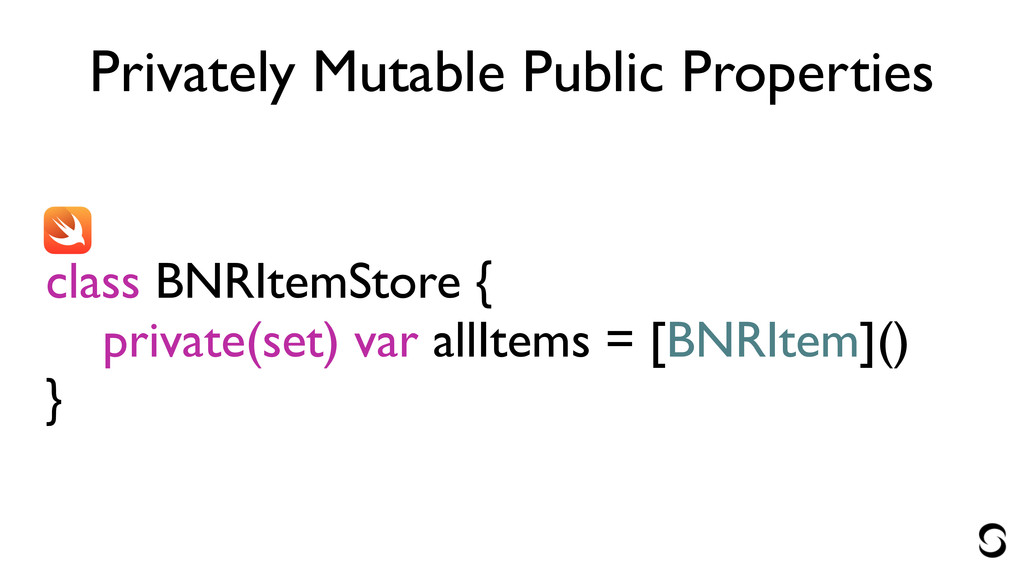 Privately Mutable Public Properties ! ! class BNRItemStore { private(set)